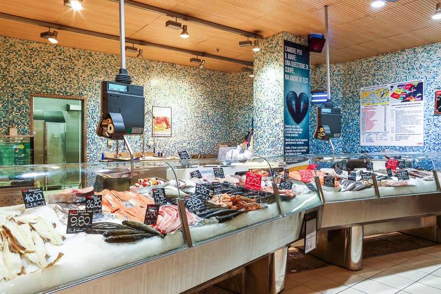 Sono presenti i banchi serviti della gastronomia, con un angolo per la vendita di pizza e focaccia al taglio, della macelleria e della pescheria, oltre al pane fresco reperibile presso il distributore self service.